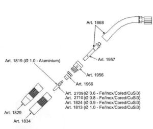 1934 | Kit Aluminium, bestehend aus: Drahtführungsseele, Drahtförderrolle und Stromdüse für Draht Ø 1 mm |