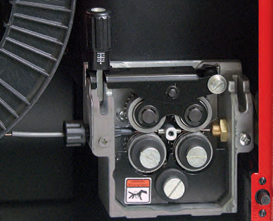 • Zwei 4-Rollen-Getriebemotoren ermöglichen die Arbeit mit zwei verschiedenen Spulentypen, sodass gleichzeitig zwei verschiedene Brennertypen mit verschiedenen Drähten sowie Push-Pull-Brenner montiert werden können.
