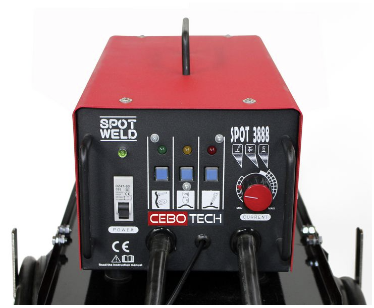 Der SPOT 3888 ist ein robuster und einfach zu bedienender Ausbeulspotter, der sich ideal für die üblichen Karosseriereparaturarbeiten an herkömmlichen Stahlblechen eignet. Durch die Ausführung mit drei Tasten für die Vorauswahl der Reparaturaufgabe und ein Potentiometer zur Einstellung des Schweißstroms lässt sich das Gerät leicht und intuitiv auf die jeweilige Blechqualität einstellen.