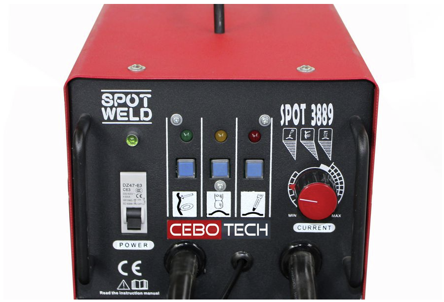 Der SPOT 3889 ist ein robuster und einfach zu bedienender Ausbeulspotter, der sich ideal für die üblichen Karosseriereparaturarbeiten an herkömmlichen Stahlblechen eignet. Durch die Ausführung mit drei Tasten für die Vorauswahl der Reparaturaufgabe und ein Potentiometer zur Einstellung des Schweißstroms lässt sich das Gerät leicht und intuitiv auf die jeweilige Blechqualität einstellen.