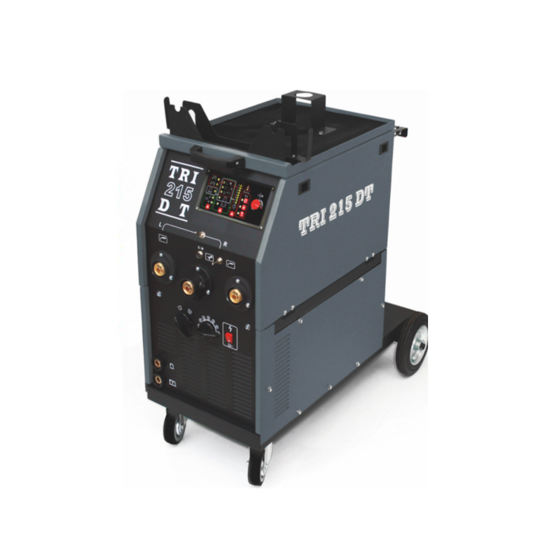 Die TRI 215 entspricht der DUO 215, hat aber speziell zum Schweißen von Aluminium mit einem langen Schlauchpaket einen dritten Zentralanschluss für einen Spool-on-Gun Brenner.
