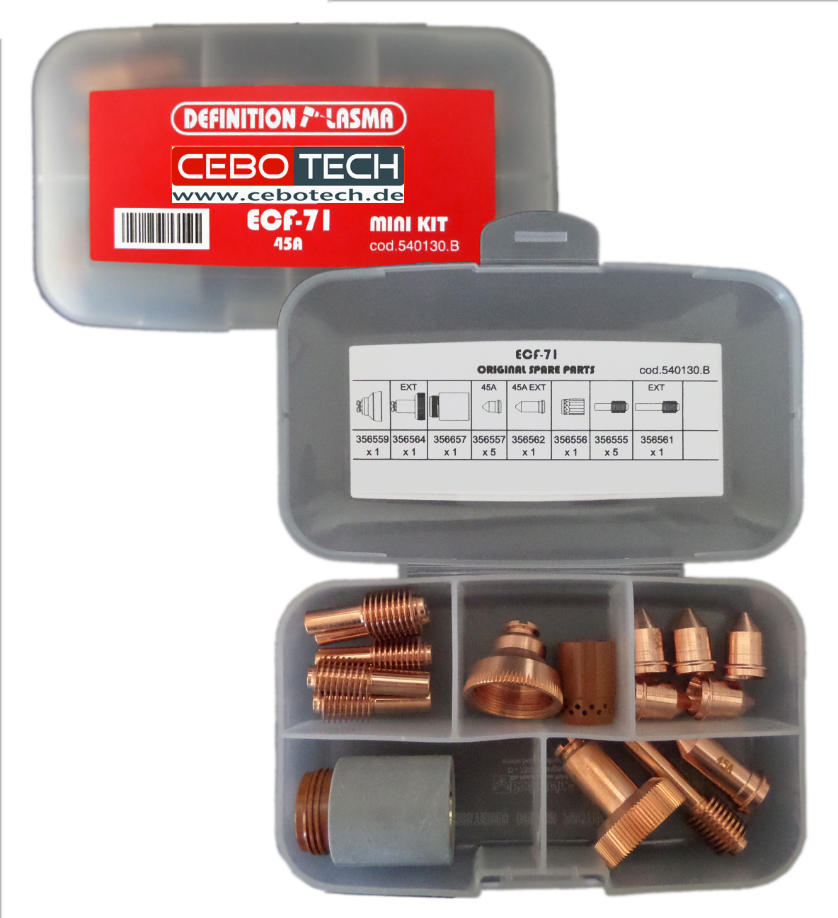 Plasmabrenner ECF-71 Verschleißteile-Kit mit den am häufigsten benötigten Teilen (17-tlg.).